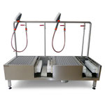 Die Stiefelwaschanlage Edelstahl-Profi bietet bis zu 3 Reinigungsplätze. Komfortable Stiefelreinigung, leicht zu säuberndes Gerät.