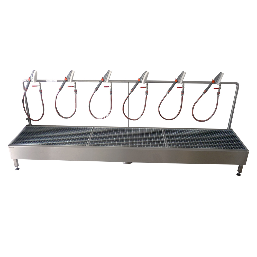 Stiefelwaschplatz mit Handwaschbürsten aus rostfreiem Edelstahl, mit verzinktem Rost